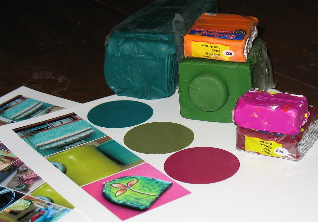 If you recall, we are trying to create a color scheme in clay that will evoke the same emotional response as this mosaic. We’ve selected the colors we want to replicate and now must decide what packages of clay we need to get us started. I do all of my caning in Sculpey III (read this, if you’d like to know why) so when I refer to clay colors, it will be Sculpey colors.