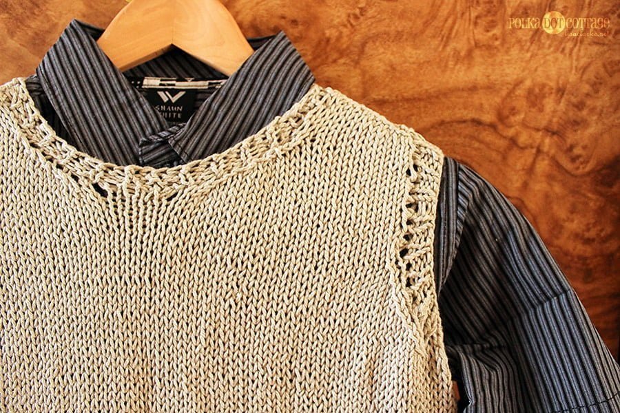 I’ll give these vests their own post when the whole thing is done, but for now here’s the gist. There will be four in total, all knit with recycled cotton: