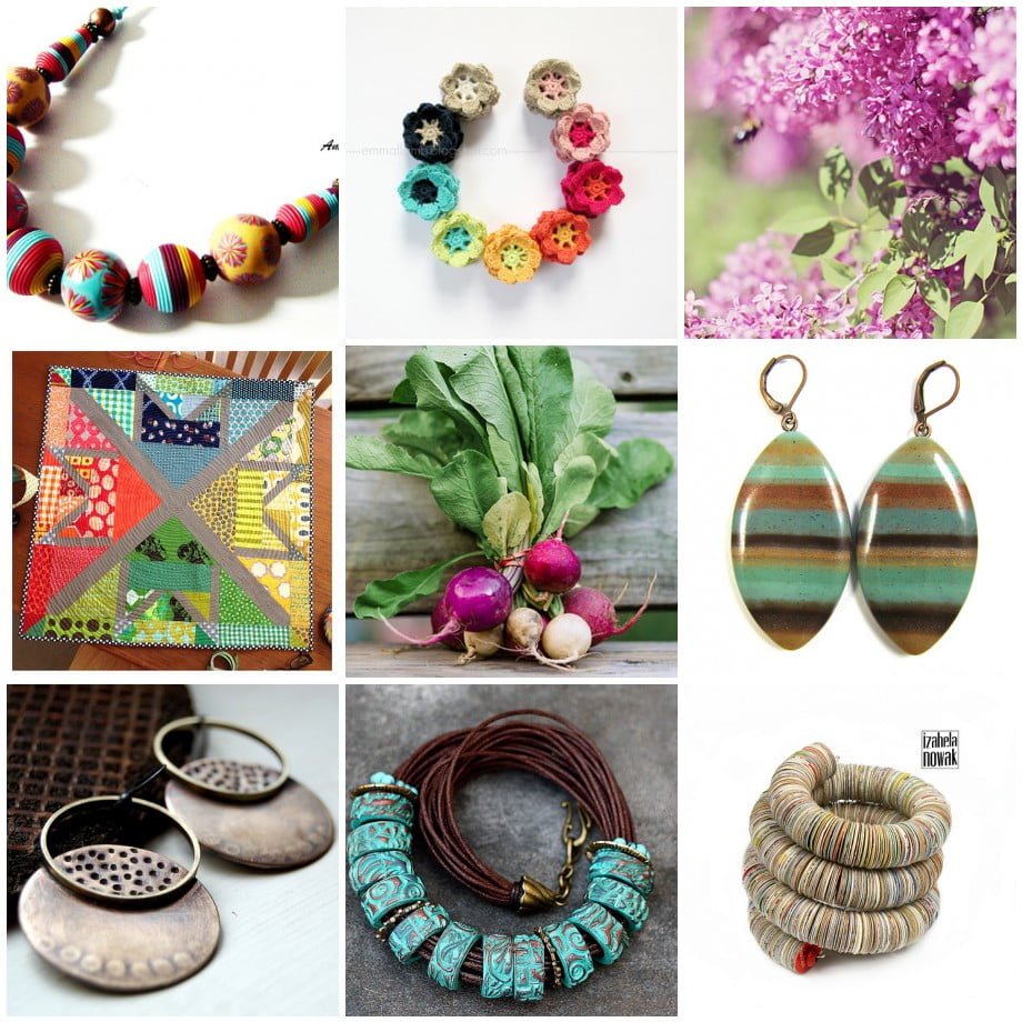 1. Collar corto flores-extrusora, 2. crochet chat : the ‘Italian project’, 3. Lilacs, 4. Quilted, bound and done! #stitchindye, 5. Radishes, 6. Southwestern Landscapes Series – Desert Blooms Collection – Sapphire Tower Earrings, 7. Monica, 8. IMG_2659, 9. Upcycling design