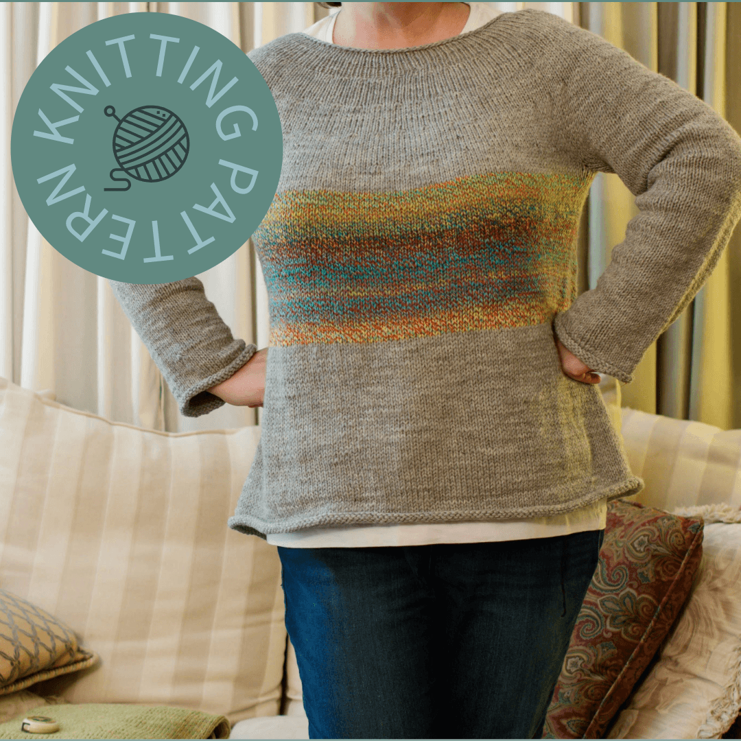 If you’re a more advanced knitter, consider this pattern to be a blank canvas that you can embellish however you like. You can eliminate the multicolored stripe, and make the whole thing one color. You can embrace the color block effect, and add additional colors at the sleeves and the bottom half of the body. You can replace the solid-colored yoke or midsection stripe with a lace, cabled, or colorwork pattern of your own. The possibilities are endless!